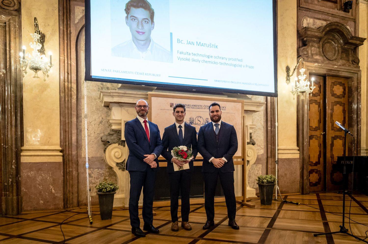 Cenu MŠMT v bakalářském studijním programu obdržel Jan Matuštík (Fakulta technologie ochrany prostředí) za práci týkající se posuzování životního cyklu, kterou přispěl k velmi aktuální debatě o souvislosti ekologické krize a spotřebního chování rapidně rostoucí lidské populace.