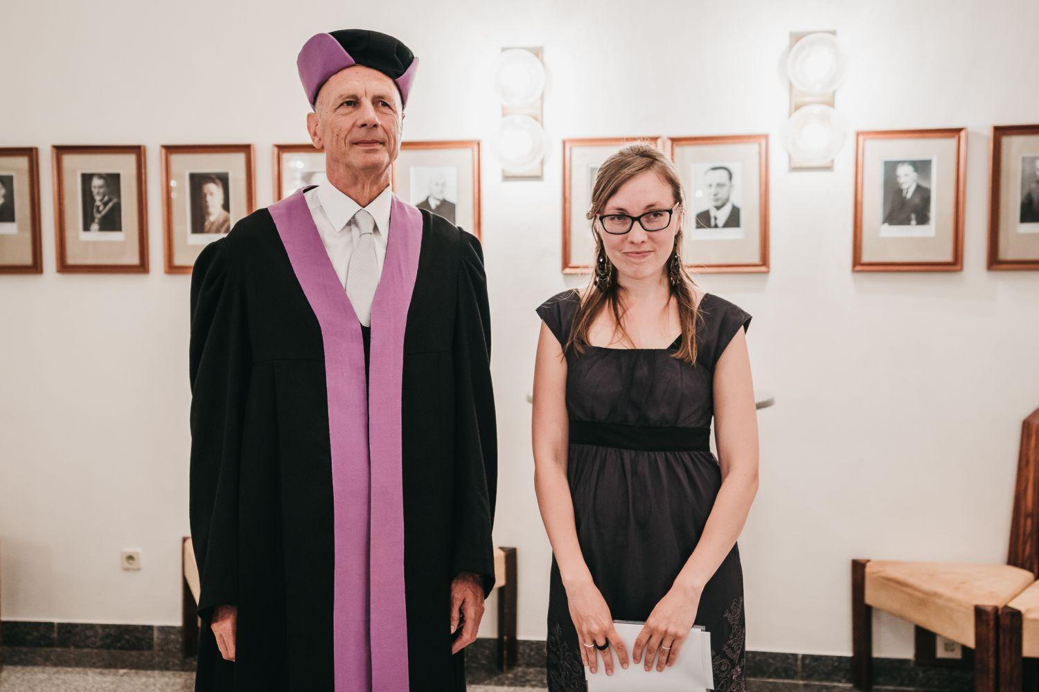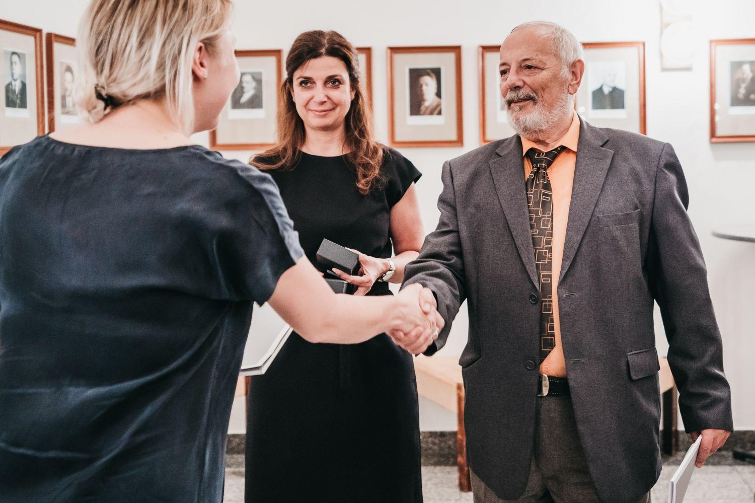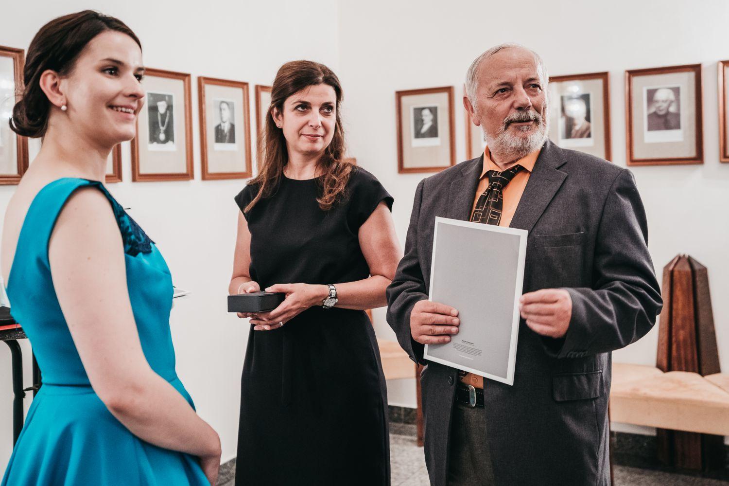 Cenu Plzeňského Prazdroje za dizertační práci převzala absolventka oboru Biotechnologie Ing. Tereza Haimanová, Ph.D., a to z rukou děkana Fakulty potravinářské a biochemické technologie, profesora Tomáše Rumla.